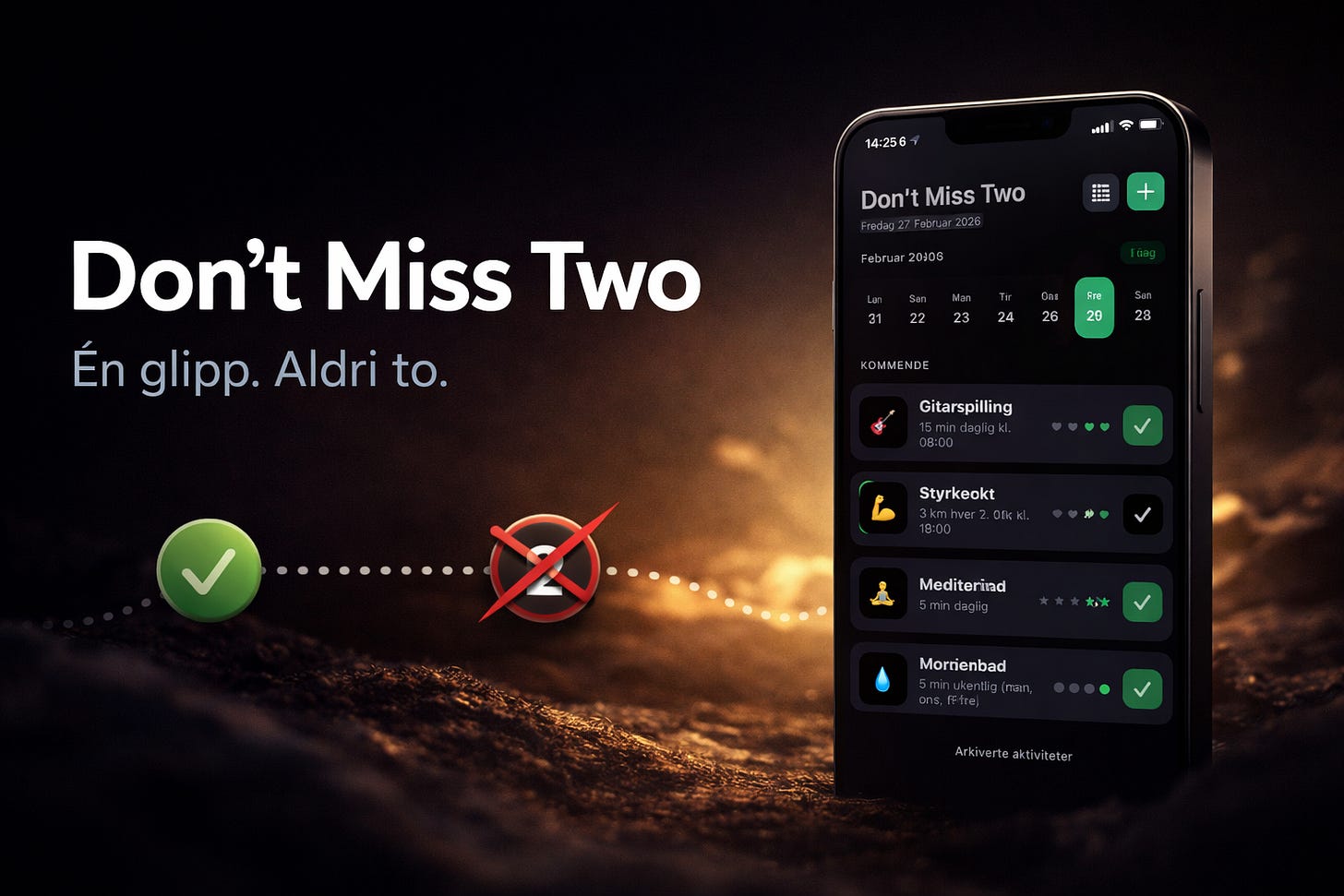 En disiplin-app basert på prinsippet: Ikke mis to på rad.