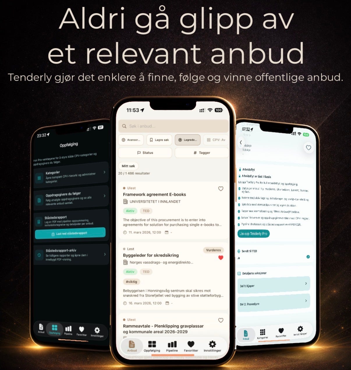 Tenderly er en app for å finne, følge opp og prioritere offentlige anbud.