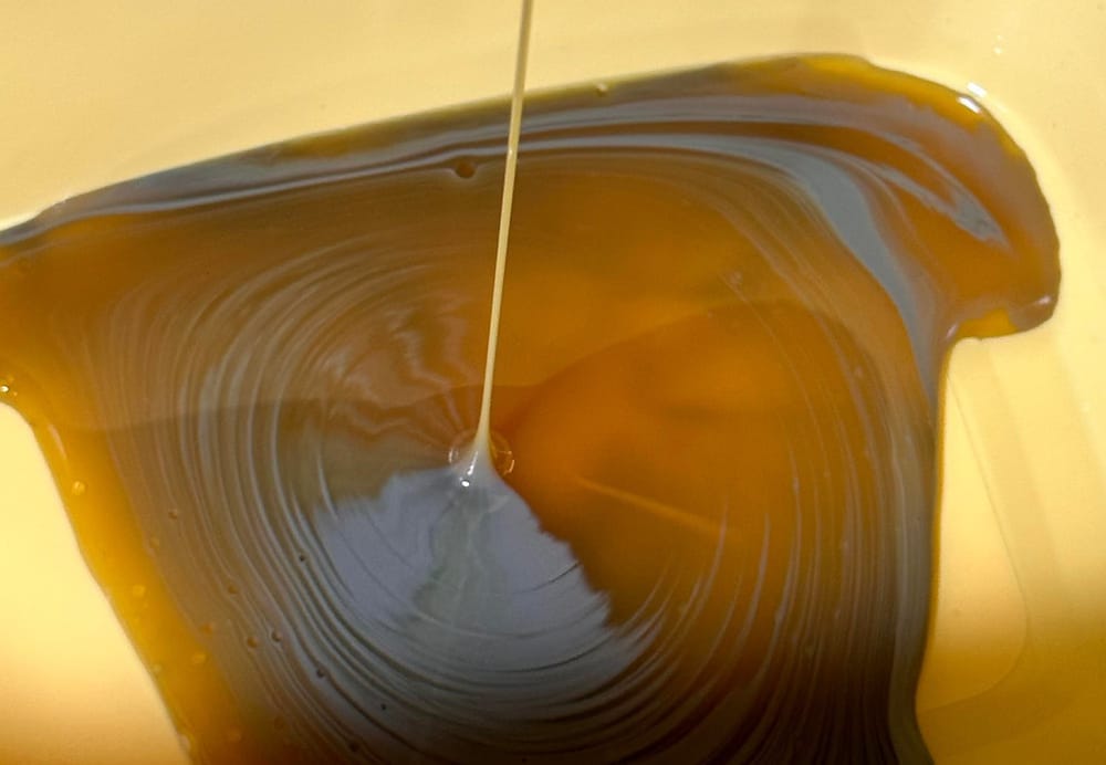 Åpne skruen i bunn og oljen vil sakte starte og piple/dryppe ut.